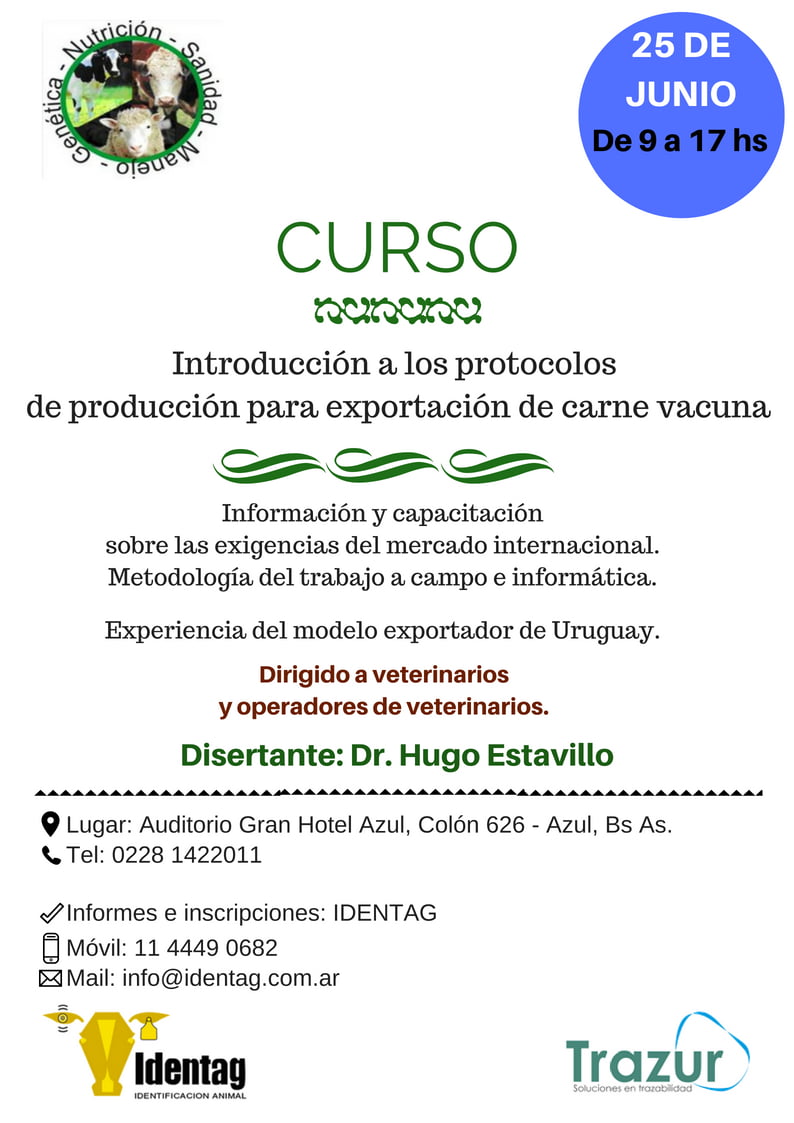 Curso: Introducción a los protocolos de producción para exportación de carne vacunaMay 21, 2018 | Información, Notas de interés | 0 ComentariosEnviar comentario Cancelar la respuestaTu dirección de correo electrónico no será publicada. Los campos obligatorios están marcados con *Comentario *Nombre * Correo electrónico * Web Guarda mi nombre, correo electrónico y web en este navegador para la próxima vez que comente. Δ